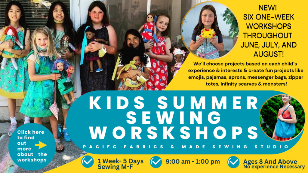 We are SO excited to continue our partnership with Pacific Fabrics! Over the years we have held classes together and now it's time for some summer camp fun! Camps will run from their beautiful store in SODO. So much fabric, so little time!